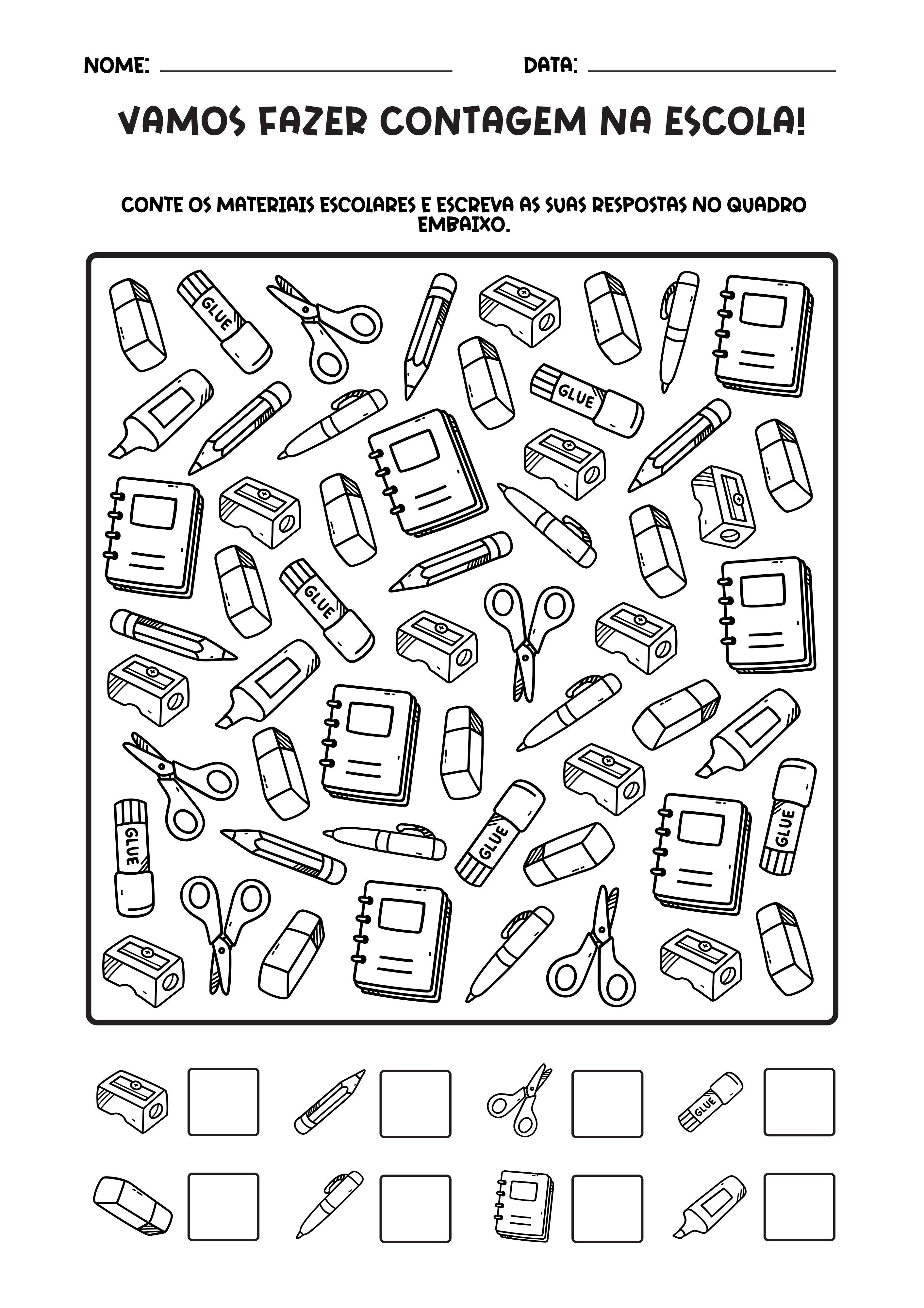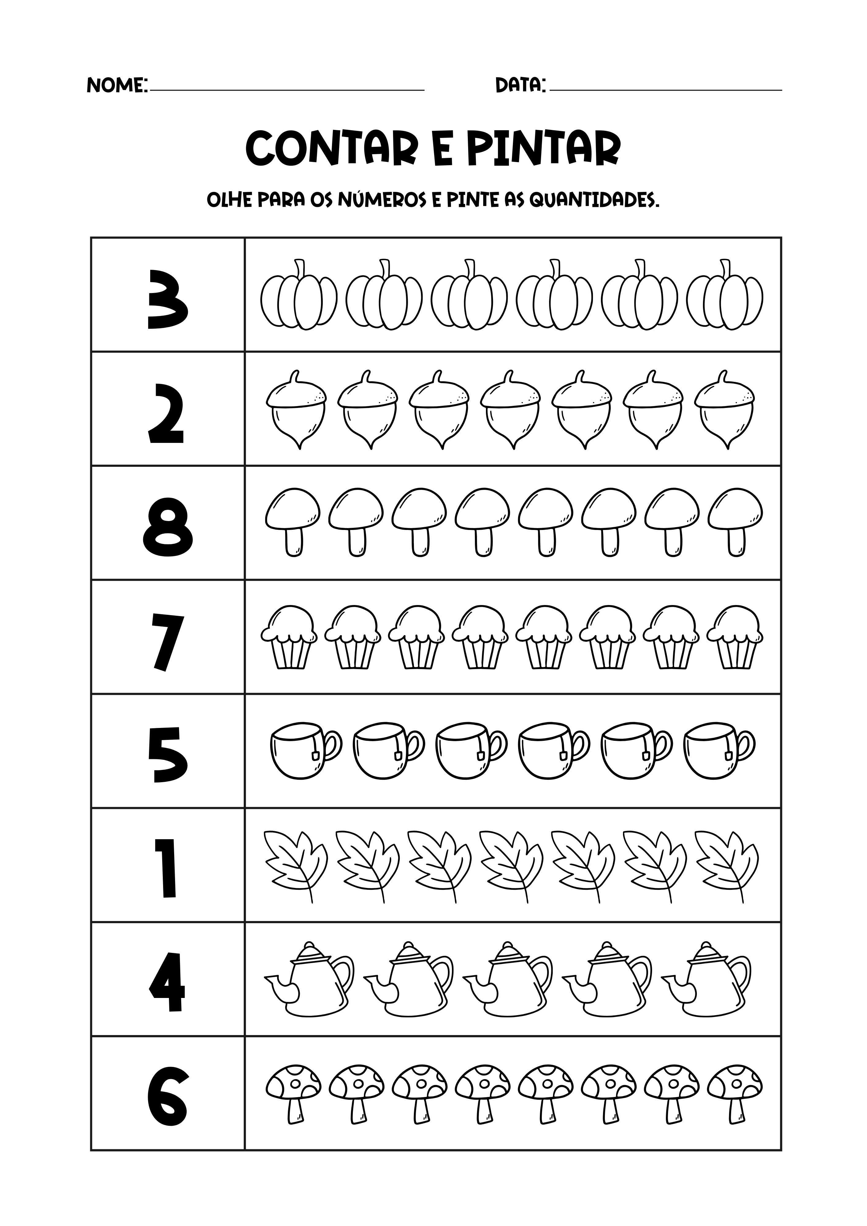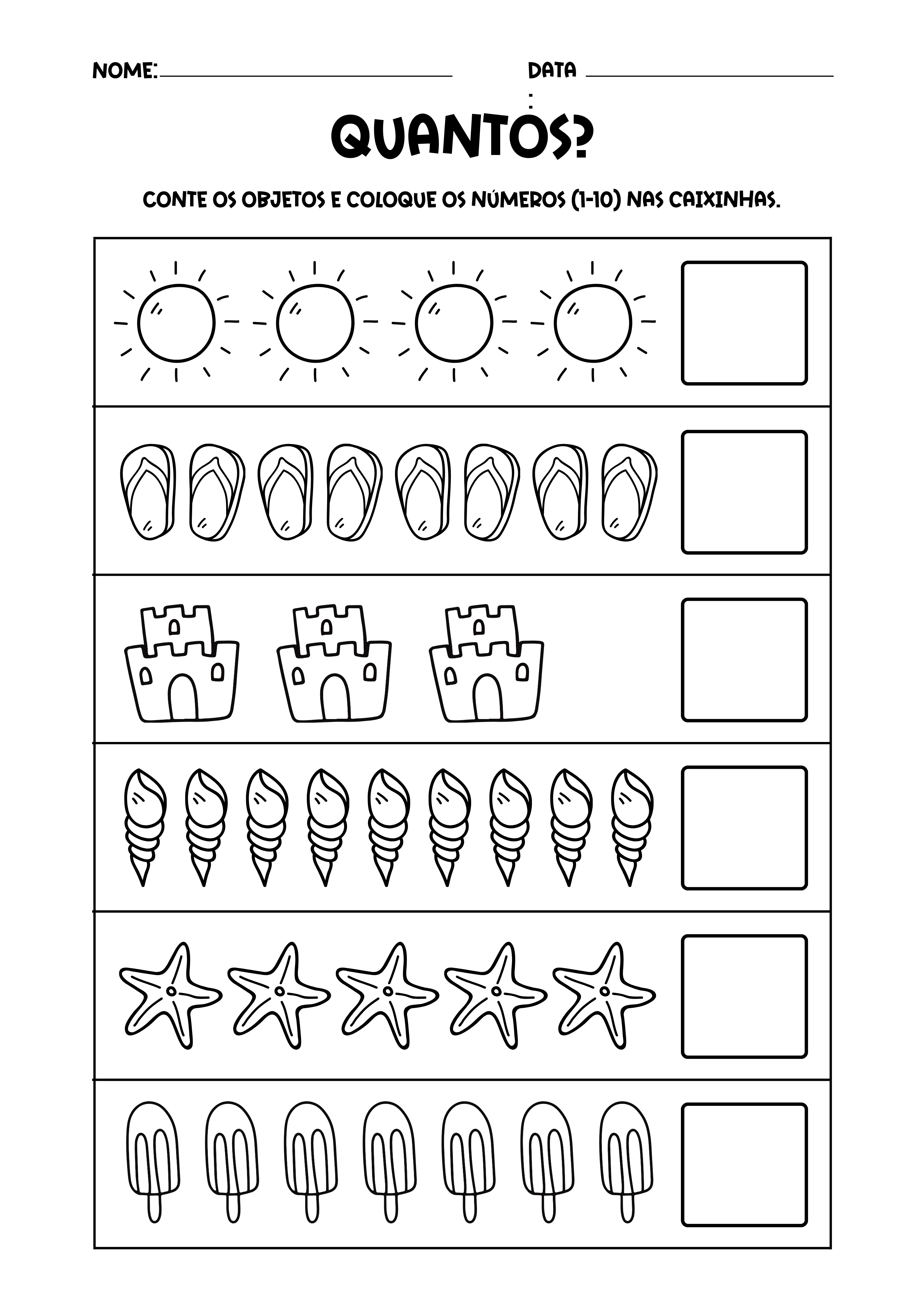 Contagem de Imagens: Incentive o reconhecimento e a contagem de objetos, seguida pela escrita do número correspondente.